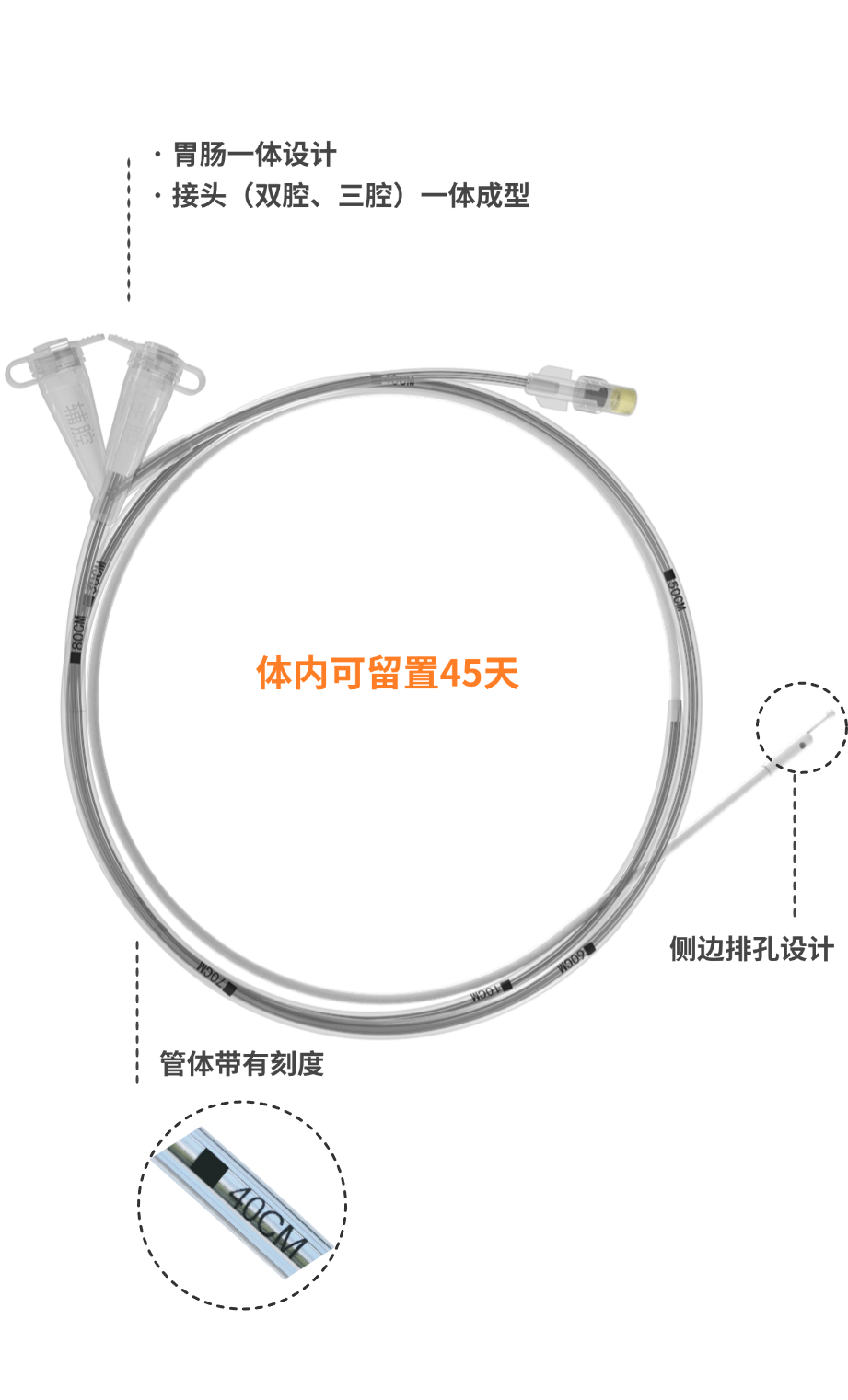 胃肠一体设计:胃部减压和肠内给养可同时进行;
